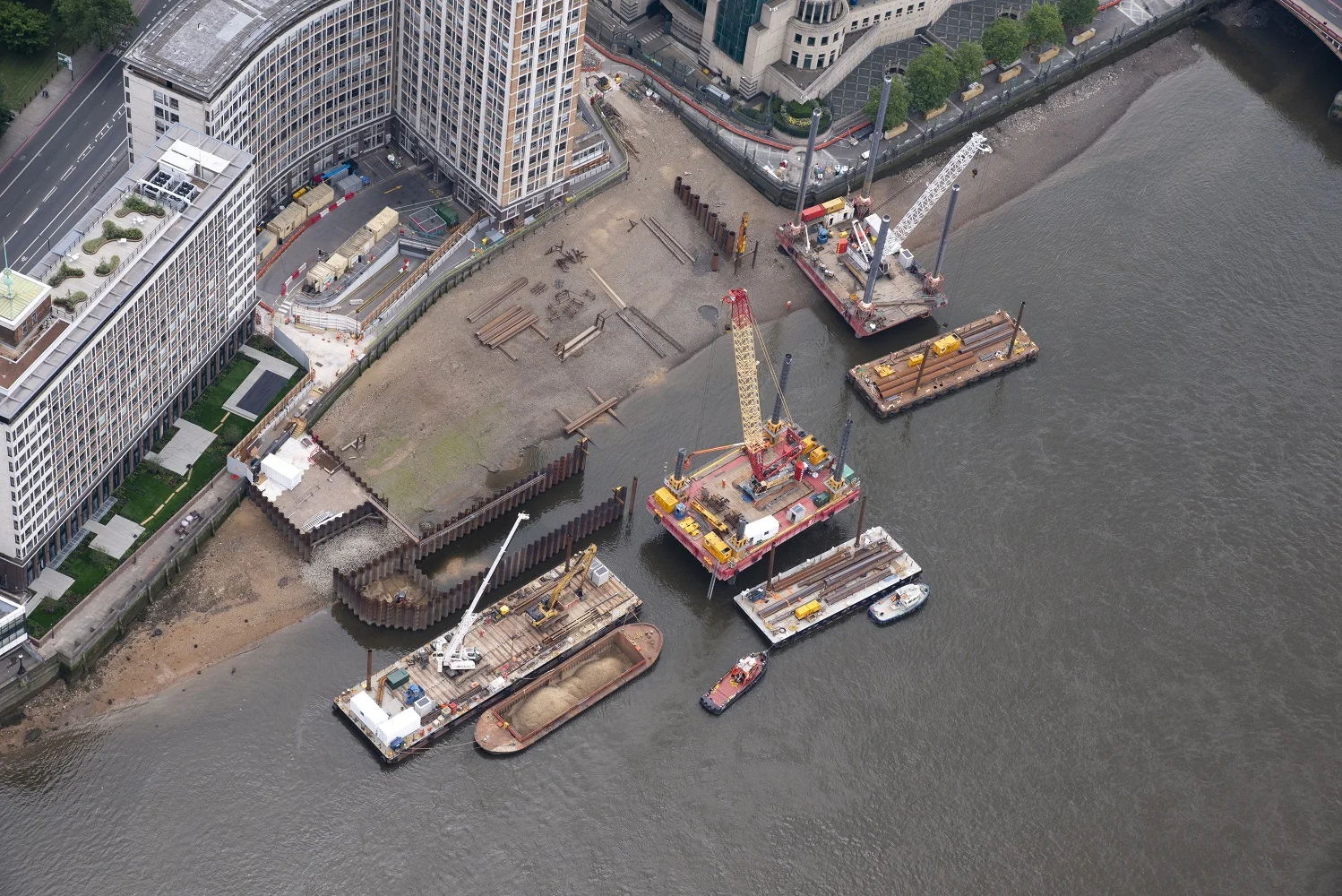 A-squared are busy supporting a number of sites on the Thames Tideway mega-project, which are located from the mouth of the Thames Estuary through into central London. We are currently providing design support on four near-shore marine developments, which comprise a combination of reclaimed land supported by sheet pile coffer dams. The sites provide lay-down, materials handling and launch facilities for the major tunnelling works.